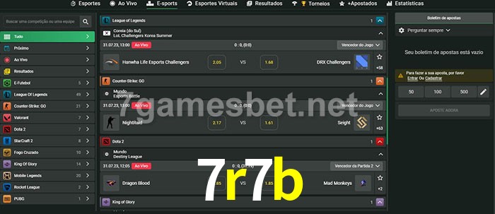 O 7r7b oferece uma grande seleção de opções de apostas em e-sports com probabilidades competitivas